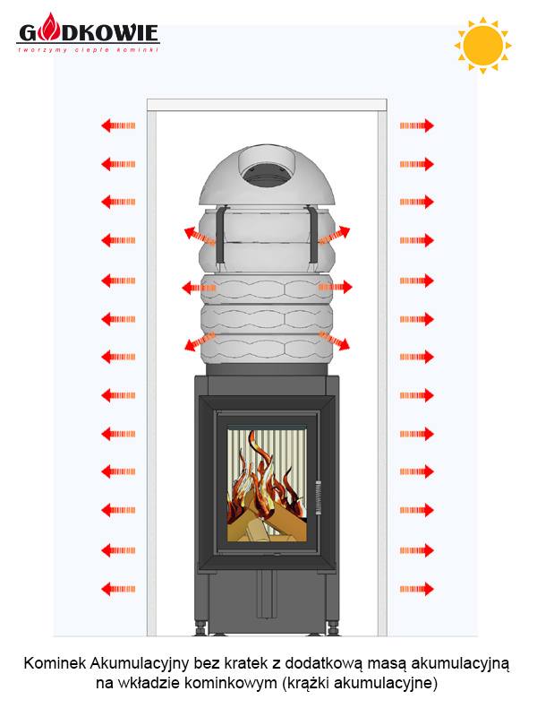 Kominek Akumulacyjny bez kratek z dodatkową masą akumulacyjną na wkładzie kominkowym (krążki akumulacyjne)
