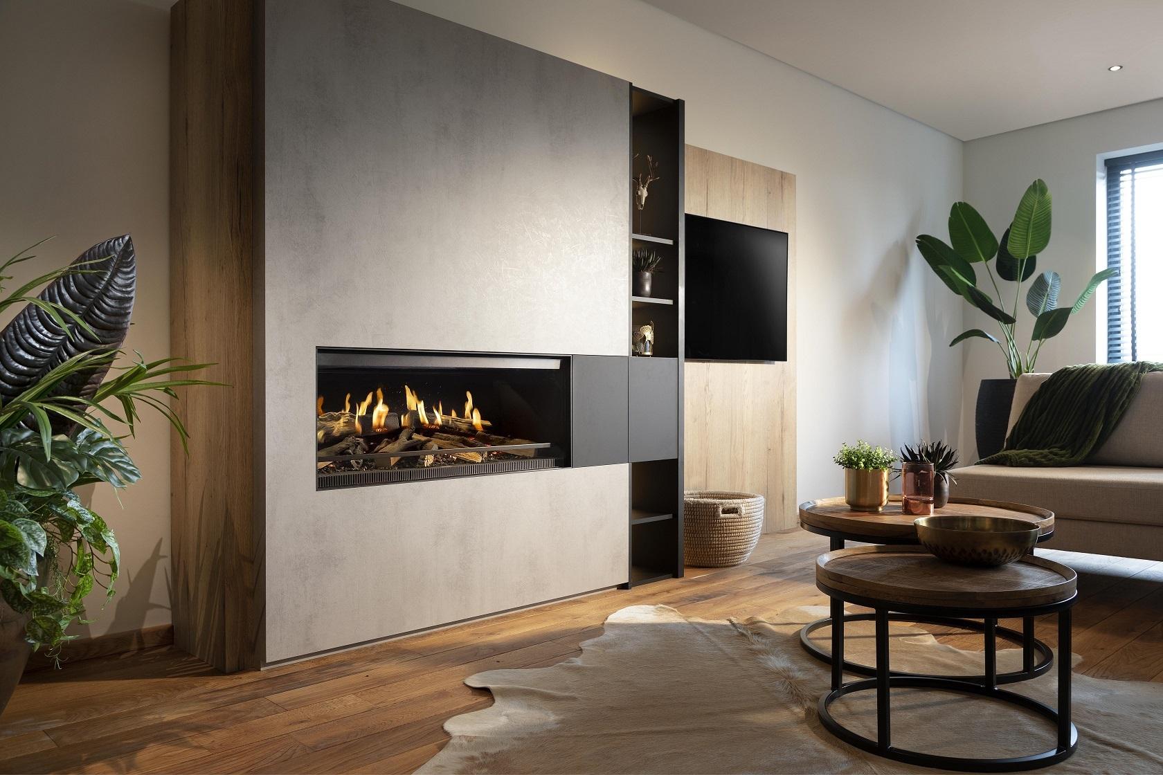 Szerokość ok. 160 cm sprawia, że kominek staje się centralnym punktem wnętrza i daje jeszcze bardziej spektakularny efekt niż mniejsze modele.