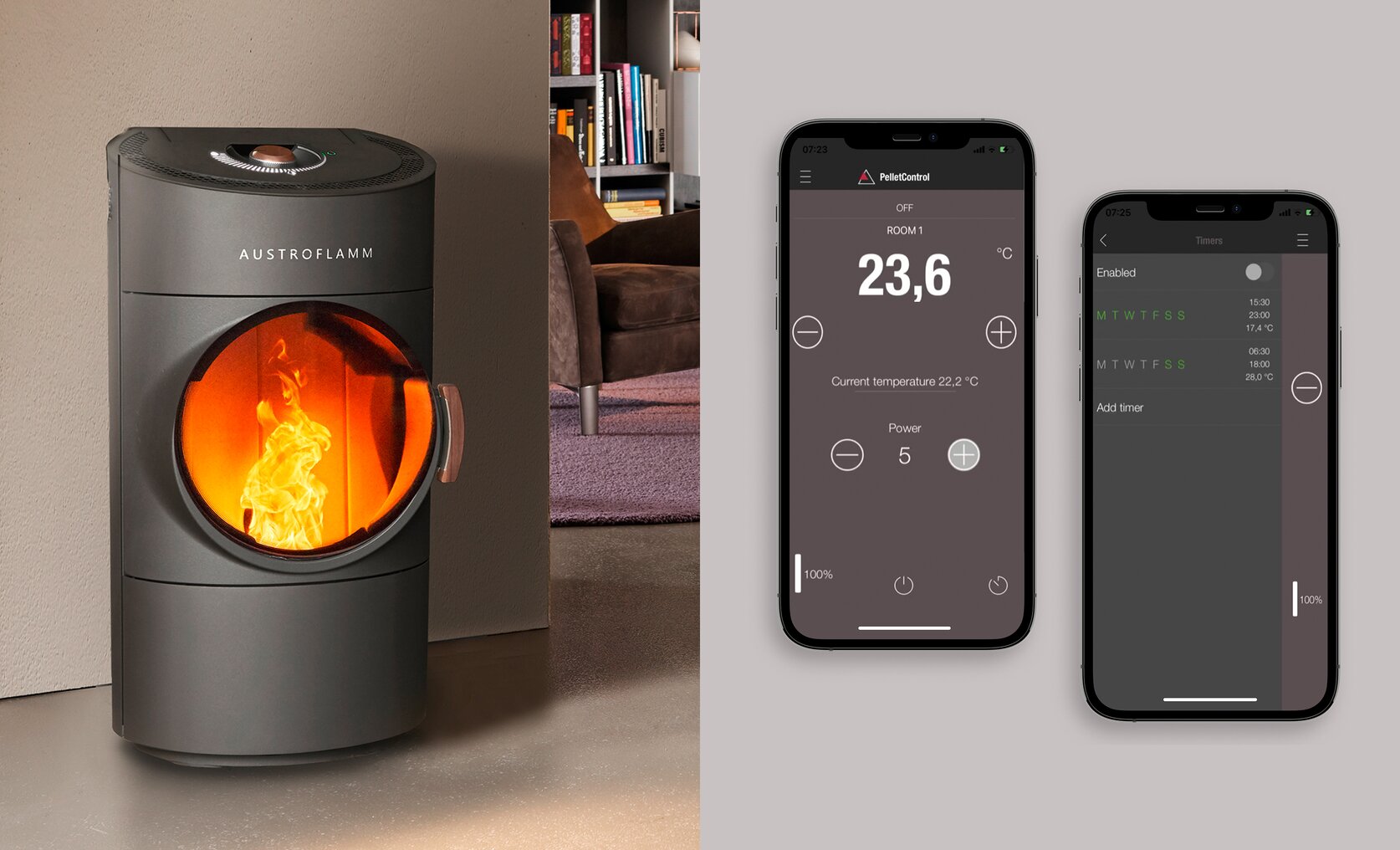 • Bardzo dobra aplikacja do obsługi pieca kominkowego