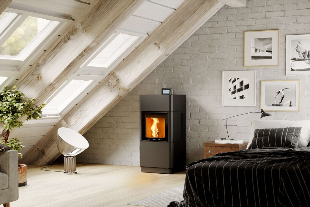 Nasz piec Perry prezentuje się prosto, stylowo i elegancko. Zarówno stalowa obudowa w kolorze stalowoszarym, jak i elegancka ceramiczna obudowa w kolorze jasnej bieli lub ciemnego antracytu nadają temu automatycznemu piecykowi na pellet wyjątkowego charakteru. Za naciśnięciem przycisku Perry zapewnia przytulne ciepło i wypełnia pomieszczenie migoczącym ogniem. Dzięki opcjonalnemu modułowi Wi-Fi Twój smartfon staje się pilotem do Twojego pieca Perry. Niezależnie od tego, czy w podróży chcesz zapewnić sobie przytulne ciepło w domu, czy chcesz skonfigurować kompletny program dzienny lub tygodniowy, Perry i aplikacja Pellet Ci to umożliwią. Inteligentny dystrybutor ciepła na każdy dzień.