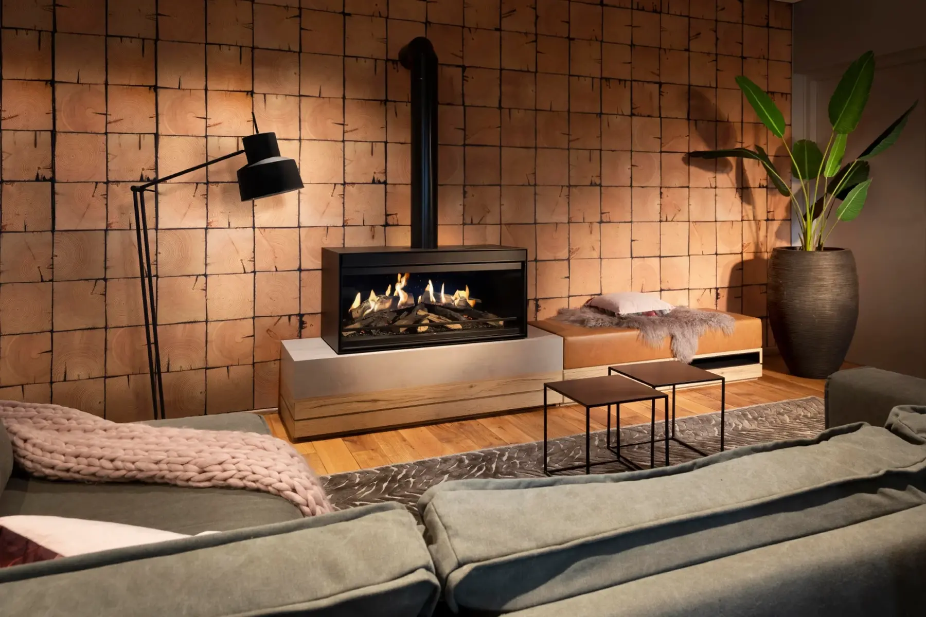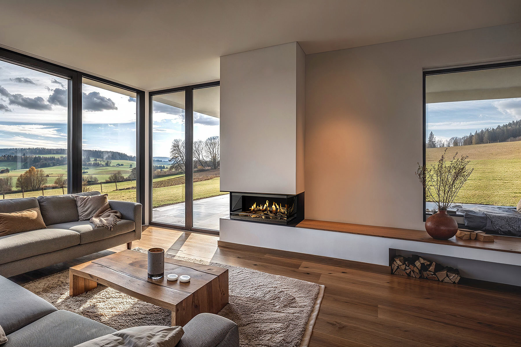 Trójstronna konstrukcja sprawia, że model ten idealnie nadaje się jako nowoczesny kominek przejściowy, oferując widok płomieni z każdej strony. Jego szerokość 100 cm pozwala również wykorzystać go jako elegancki kinkiet ścienny. Kominki Kalfire E-one można konfigurować według własnych potrzeb – w tym celu pomocą służą autoryzowani i certyfikowani partnerzy marki, którzy zajmują się kompleksowym montażem i realizacją projektu.